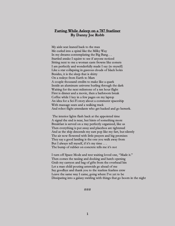 Also, the rights of my poem, “Farting While Asleep on a 787 Starliner,” published in the 148th edition of Space and Time magazine, has reverted back to me.